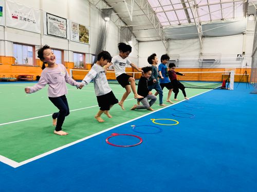 運動能力の約8割が定まるゴールデンエイジの未就学児~小学生6年生を対象とした総合運動教室です。 広々としたカーペット製の屋内テニスコートで年間12の月替わり種目に取り組みます。